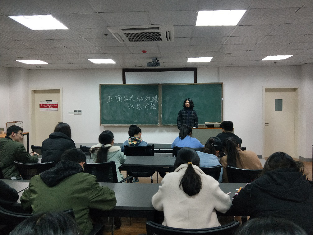 本科生及研究生心理干部了解现有的心理问题并学会如何正确对其进行处理,我院于12月2日晚于院楼425开展了第二期干培训活动,并取得了圆满的成功。