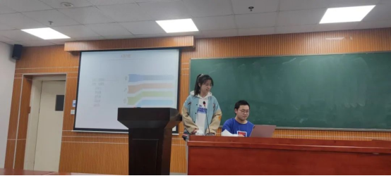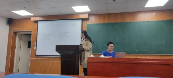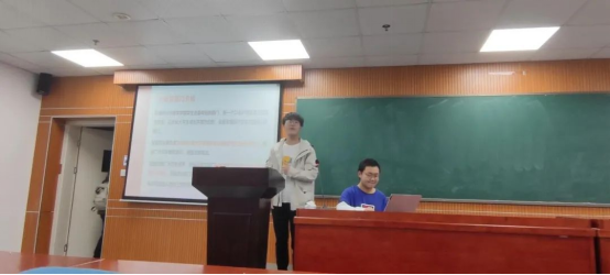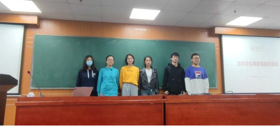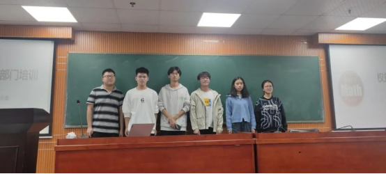 学习部部长桂斌对学习部进行介绍,特别对往年学习活动讲解,例如16天学习打卡活动,数学广角推送,学霸笔记评选活动,考研送温暖活动,并且部门成员进行了合影。