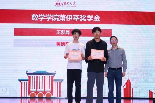 咕咕番 第九届励志人物和2022年各项奖学金的表彰大会于5月28日在学校的天马小剧场举行。由海外校友郑力刚、全辉、周建平等捐资设立的“萧伊莘奖学金”2022年度的获奖者为信息与计算科学1901班的王泓烨和数学2101班的黄博昕两位同学。颁奖会上,副院长雷渊教授为他们颁发了获奖证书。