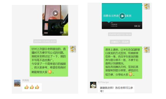 1月29日,教育部发布“停课不停学”通知。1月30日,学校通知老师们做好网上教学准备。虽然当时还不确定是否会延迟开学,但一想到学生的学习不能被疫情耽误,姚老师马上和其他老师一道投入到雨课堂、超星学习通、爱课程、腾讯会议等各类线上教学工具的学习之中。那段时间教师群里非常热闹,大家都在交流各种软件的使用体验。在网上教学过程中,姚老师不断总结经验,常常把线上教学小技巧录成视频与同事们分享,互相鼓励加油。
