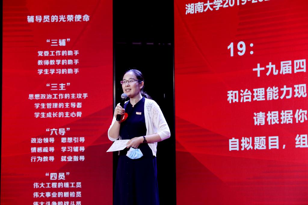 比赛间隙,全国辅导员年度人物提名奖获得者、物理与微电子科学学院党委副书记陈晓萍现场分享了工作体会。