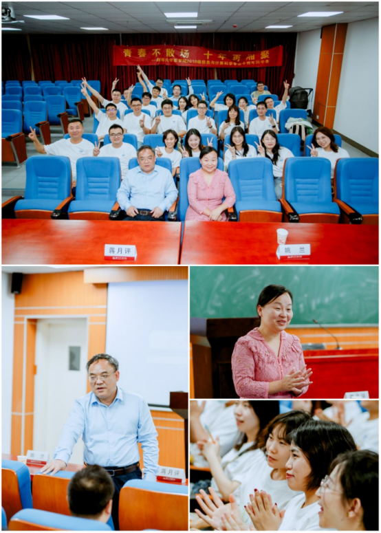 院楼207教室组织召开座谈会议,蒋月评书记代表学院对2010级校友本科毕业十周年重返母校表示热忱欢迎和衷心祝愿,并介绍了学院十年来的发展与成就,引发了校友们的强烈共鸣,姚兰老师表示对此次聚会非常期待和激动,希望大家志存高远、努力工作、珍惜同学情谊。