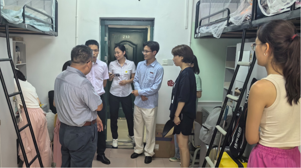 在走访宿舍的过程中,学院领导、老师对新生及亲友们表示欢迎,查看了新生们的寝室情况,提醒同学们合理使用电器设备,确保用电安全,让新生们共同营造一个良好的学习和生活环境。学院领导、老师与新生及亲友们进行深入交谈,表达了与家长们合力育人的决心,真诚期望与家长们共同见证孩子的成长。
