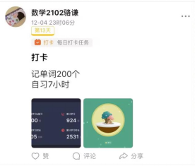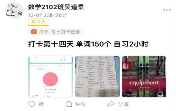 希望同学们在打卡活动结束之后,依然能保持在本次活动中展现的积极向上的态度和对学习的满腔热忱,在今后的学习生活中做一个更加自律、上进的人,成为更好的自己!