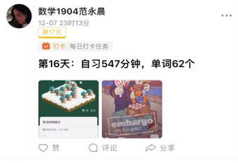 历经整整16天,虽然中间经过了疫情严峻,提前返乡等波折,但同学们学习的热情并没有受疫情影响!大部分同学都走完了这16天的奋斗之路,依然在坚持每天的自习和单词的打卡,16天学习打卡活动圆满结束!恭喜同学们完成挑战!把掌声送给最棒的自己~