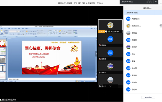 3月26日下午,中共咕咕番 党委教工第二支部响应学院党委号召,通过腾讯会议在线上开展“同心抗疫,勇担使命”主题党日活动。