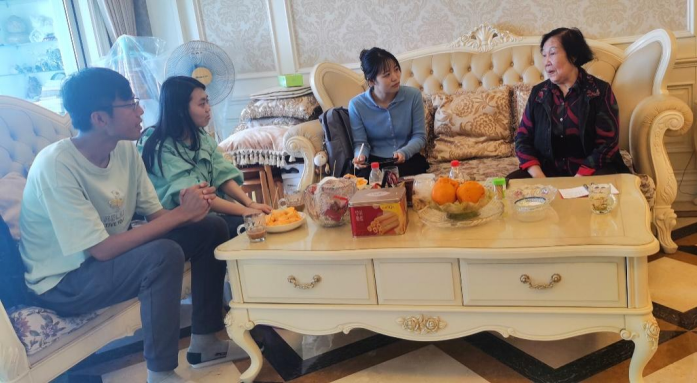 2021年4月23日下午,咕咕番 党办主任胡蕾同志、全国样板党支部——本科生第二支部成员龚添爱同志、唐家熠同志、王骞同志一同前往拜访学院退休老党员何灿芝老师